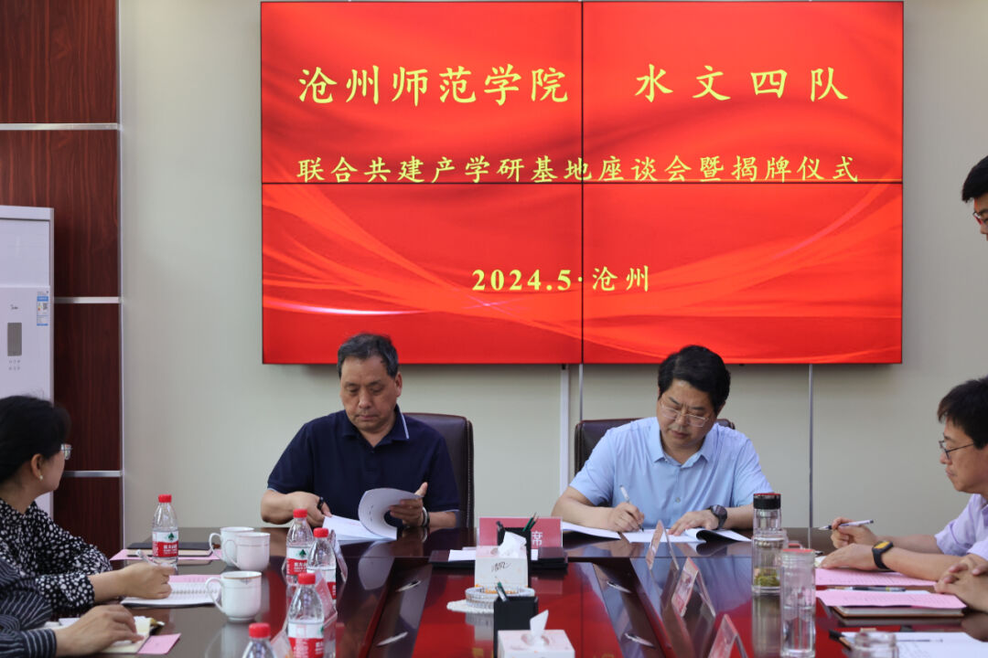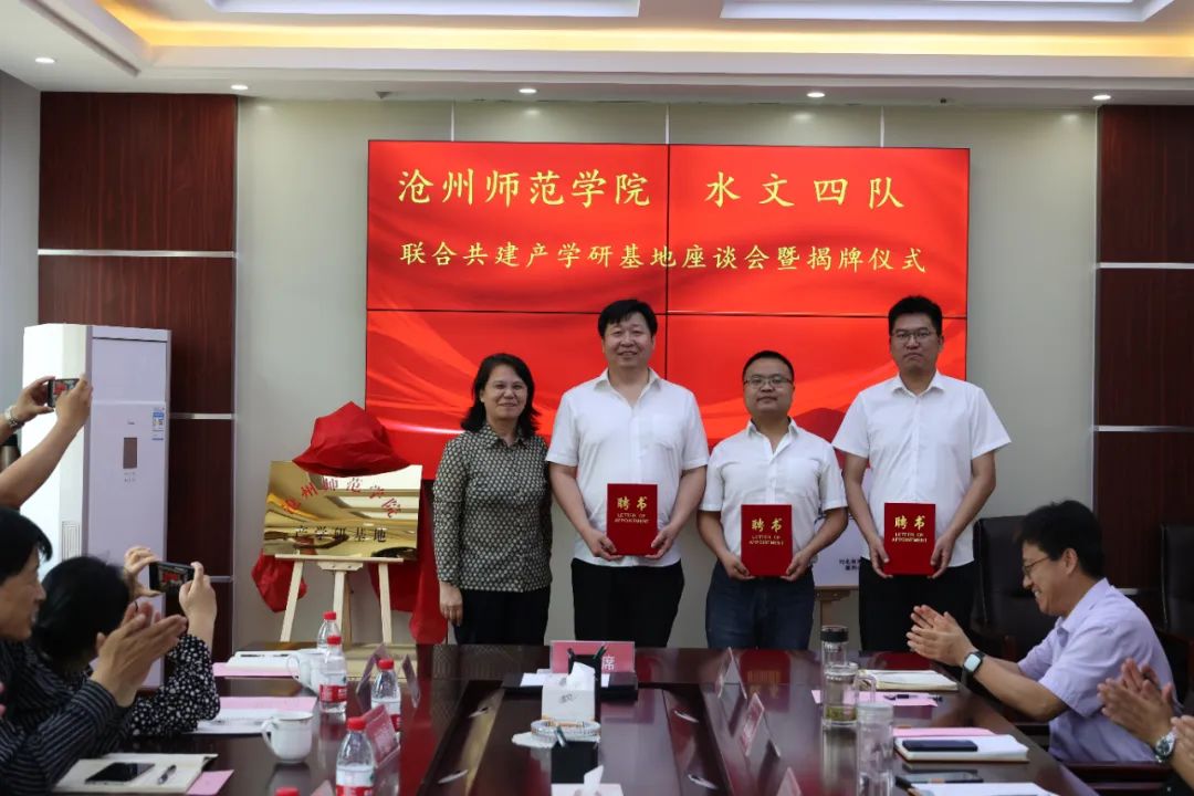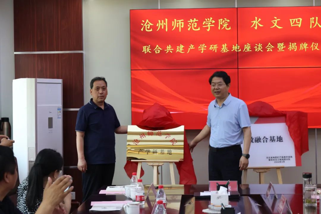 仪式上,范小振、李砚智分别代表双方签订了联合共建产学研基地协议,并为必赢nn699net官网“产学研基地”和河北省地矿局水文四队“产教融合基地”揭牌。崔维真向水文四队技术人员颁发了兼职教师聘书。