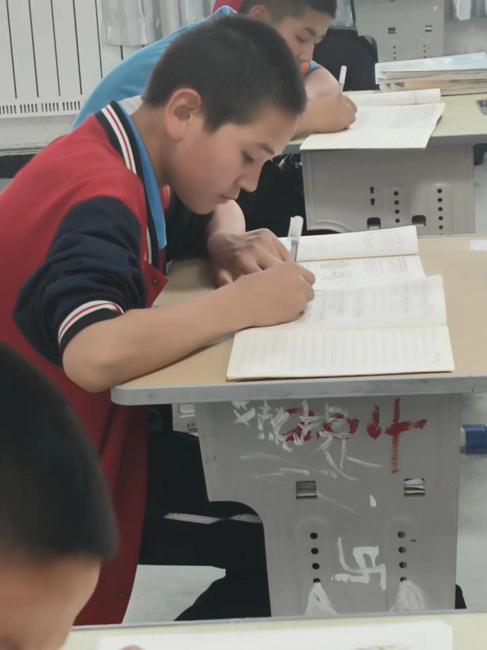 期中考试,他提高了30多分。和他聊天的时候,他说选择是一句一句对着课本确定的答案。听完之后,我的内心触动很大,所以在晚自习的时候,我第一次表扬学生热合曼,当时全班同学都给他鼓掌。
