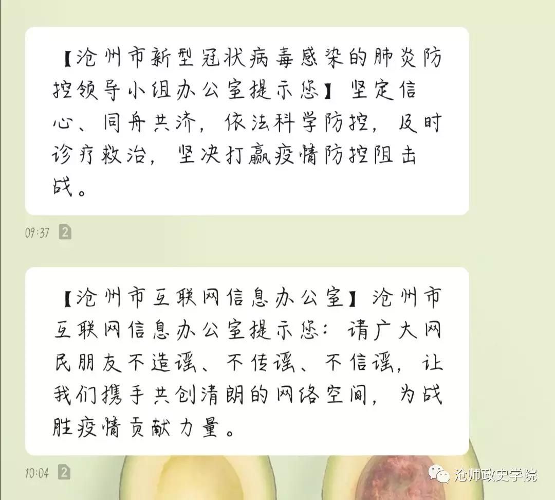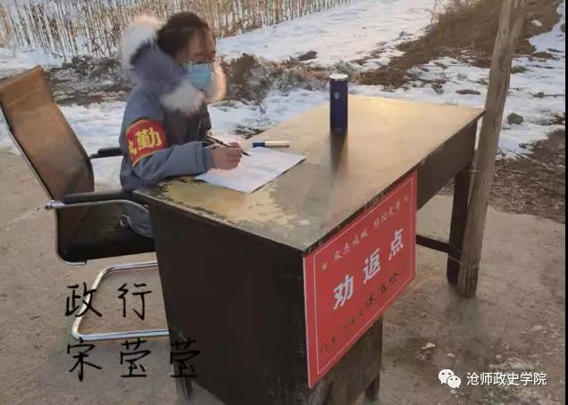 我是必赢nn699net官网政史学院政治学与行政学1901班学生宋莹莹,家住河北省张家口市蔚县。自新型肺炎爆发以来,我和家人每天早上醒来第一件事就是打开新闻观看疫情的最新消息,看着每天日趋上升的死亡人数、新增病例、疑似病例,我非常的难过,但很长时间除了待在家中别无他法。在全国都积极响应党的号召下,听到了村委会招募志愿者的消息,我第一个就报名了。我们的主要工作是,从1月28日起在村口做好监管,严禁外来人员进入、不定期巡逻,对人员流动情况调查,积极做好村民思想工作,做好基层疫情防控工作。