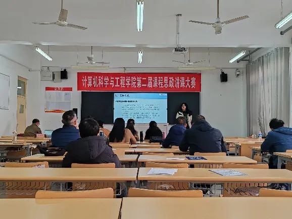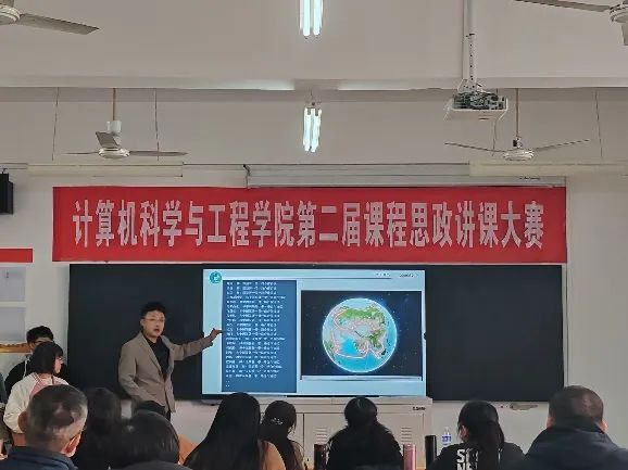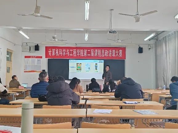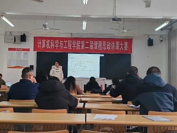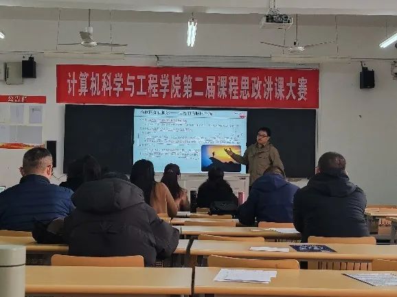 3月19日下午, 计算机科学与工程学院在理科楼4教室举办第二届课程思政讲课大赛,12位参赛教师依次登场进行教学展示,评选出一等奖2名、二等奖4名、三等奖6名。该院院长马文娟、党总支副书记邢胜以及全体教师参加活动。