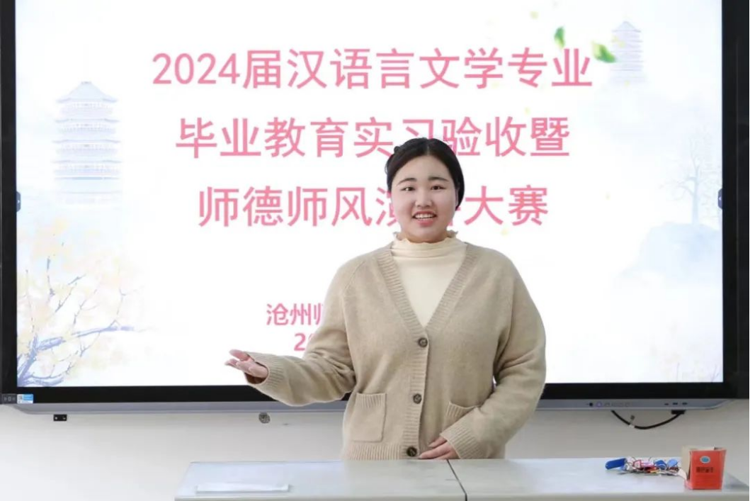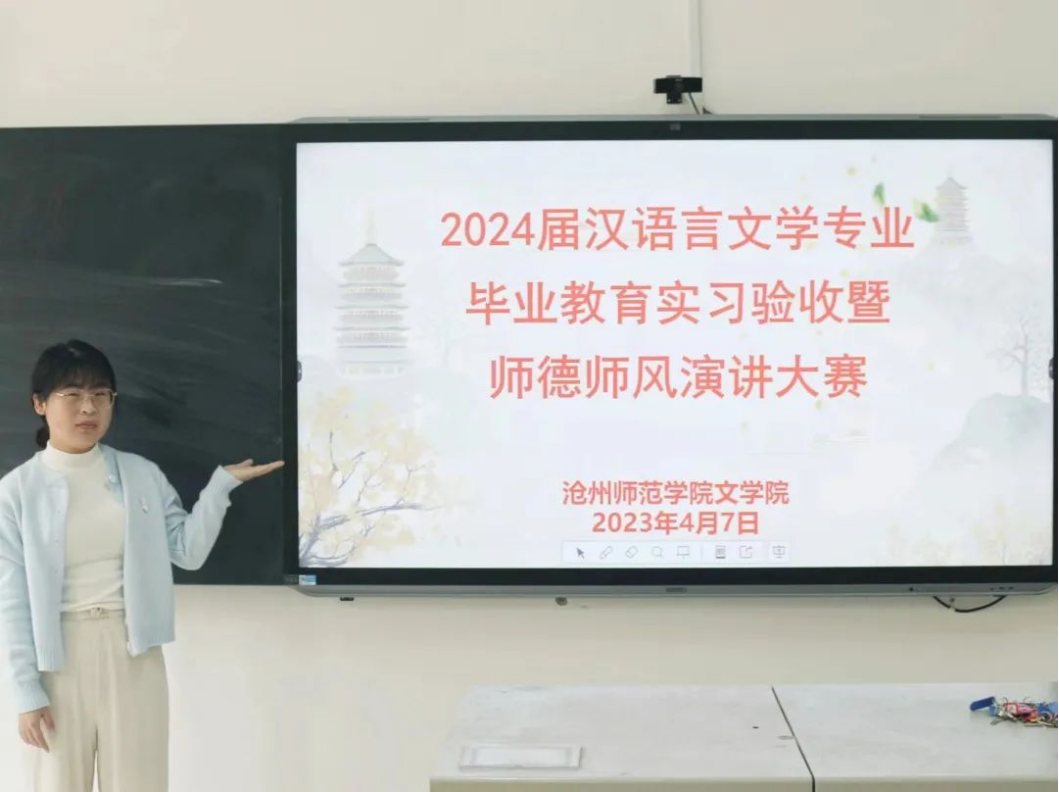 为进一步巩固教育实习和教育研习成果,把好毕业生“出口关”,近日,文学院于齐越楼204教室举办2024届汉语言文学专业毕业教育实习验收暨师德师风演讲大赛。文学院院长王金萍、党总支书记王竹承、副院长程艳芳参加活动,教师王晶主持。