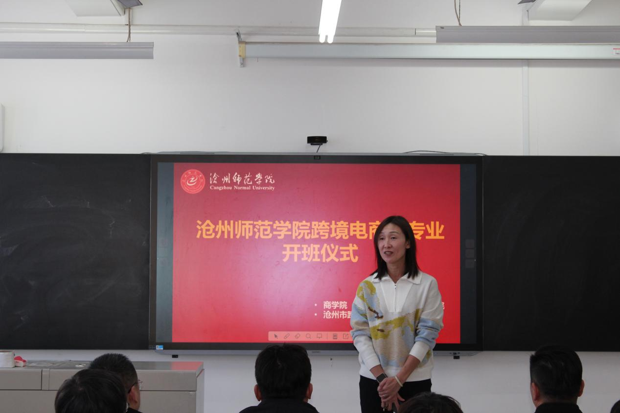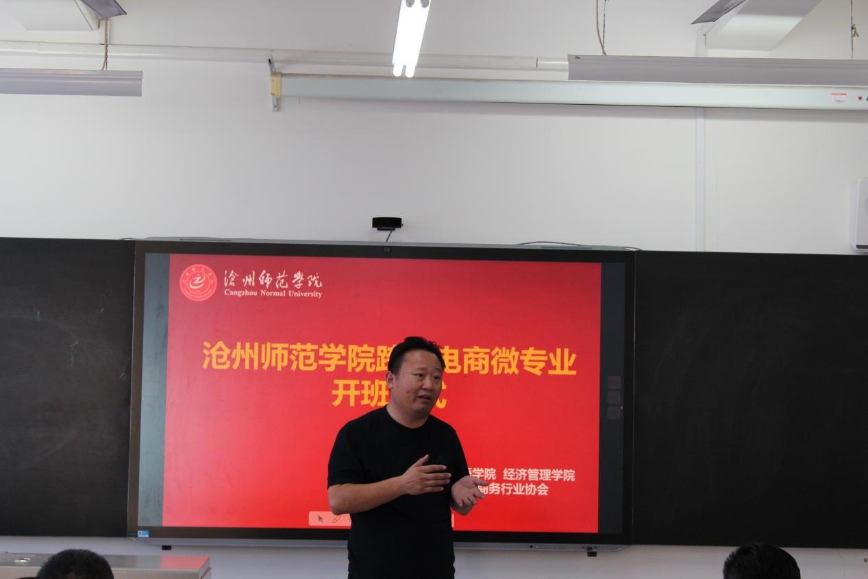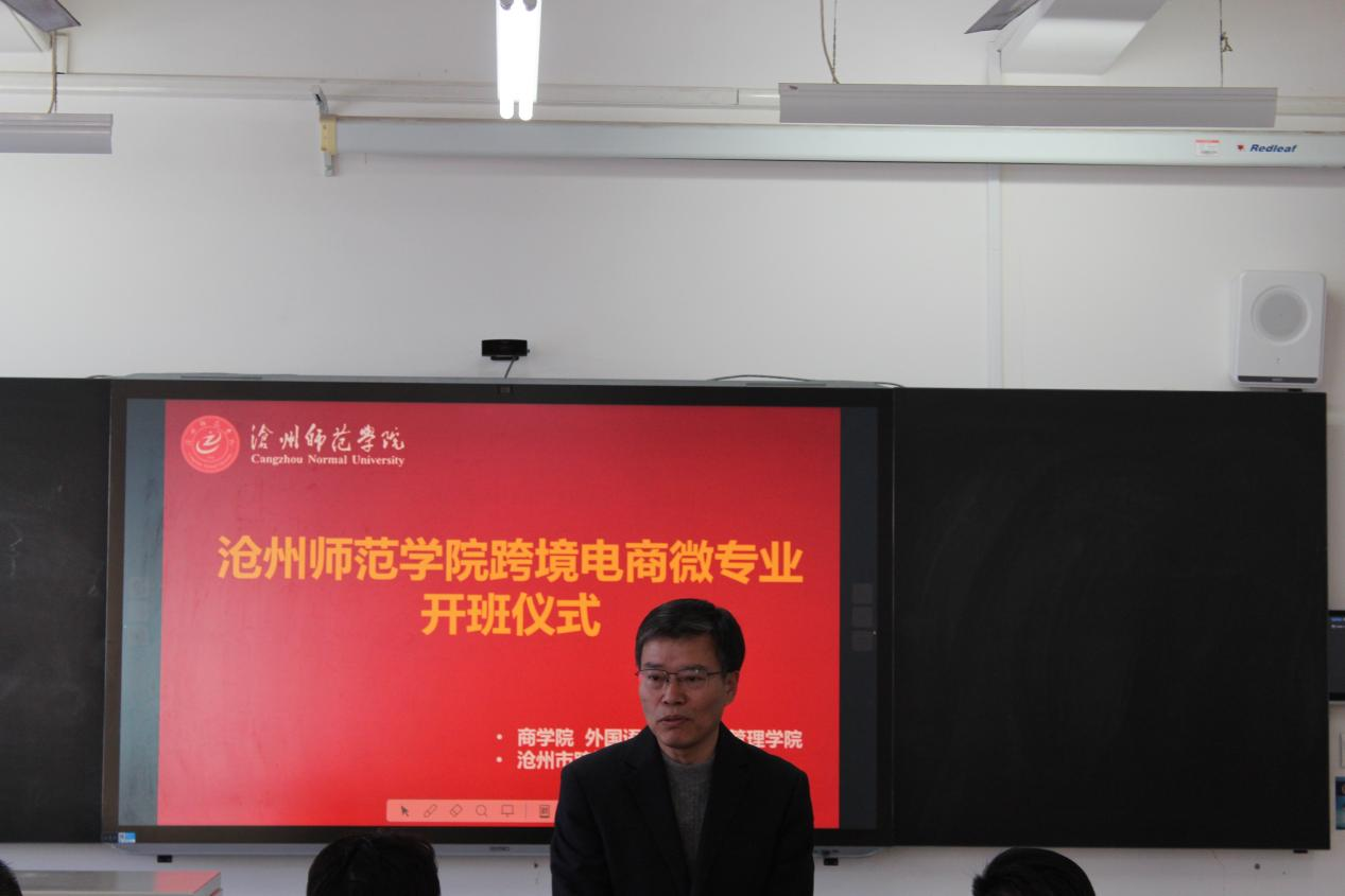 为培养更多适应市场需求的高质量跨境电商人才,助力地方经济发展,12月17日,跨境电商微专业开班仪式在经管学院举行,沧州市跨境电子商务行业协会会长徐连星、秘书长张英德,经济管理学院院长李建忠、外国语学院院长王娜、商学院院长张兰新、校方讲师团队和部分学生代表共同参加活动,仪式由经济管理学院电子商务专业教研室主任夏莉莉主持。